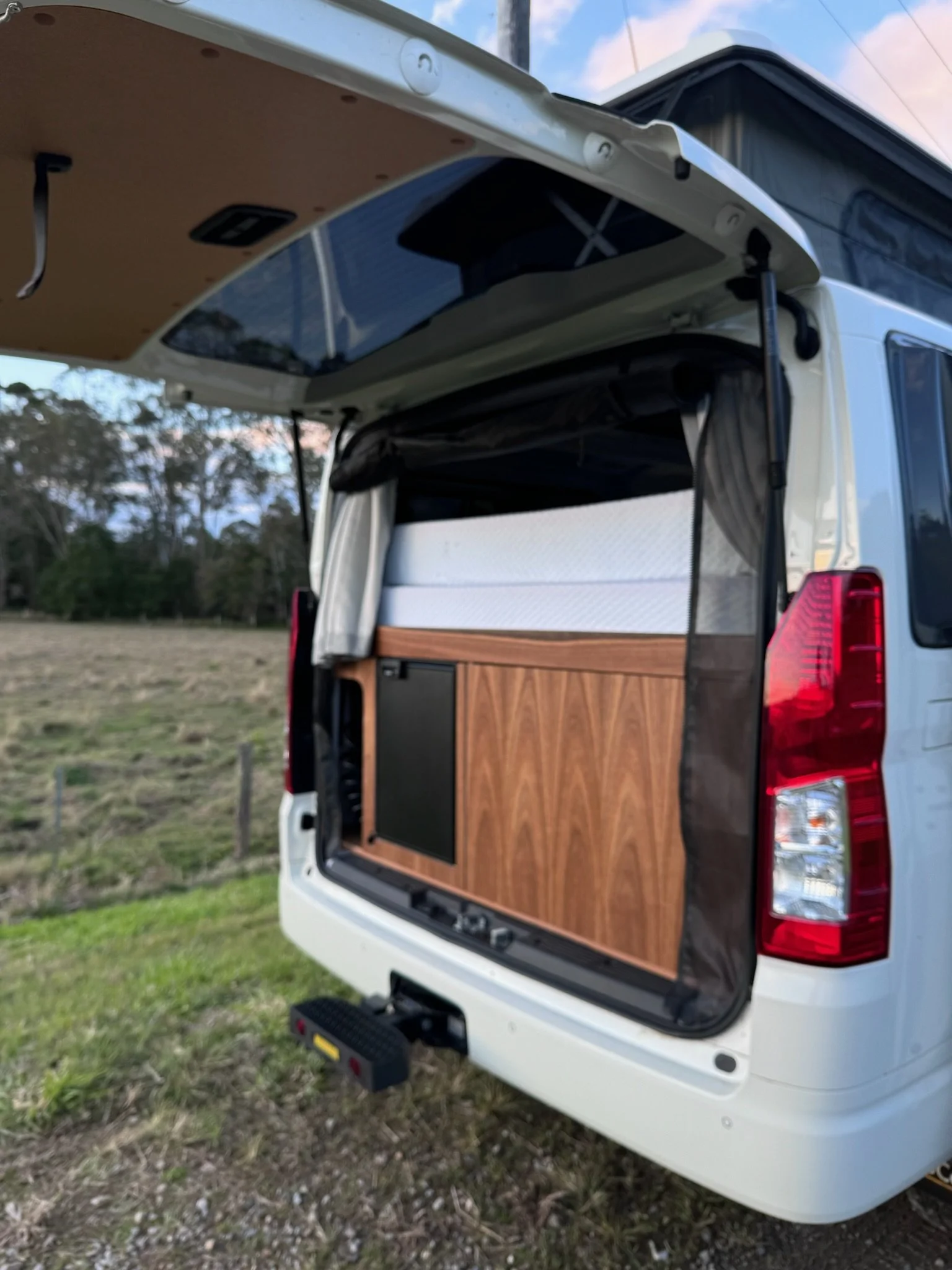 A weekend getaway for a family of four equipped for travel bound not by the paved roads. This Hiace has the extra gear to get it that little bit further than most.